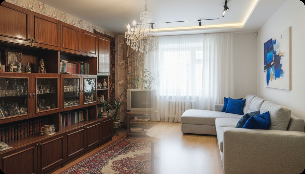 Современные алгоритмы учитывают планировку, освещение, пропорции помещения. Результат выглядит настолько естественно, что можно оценить, подойдет ли вам конкретное решение.